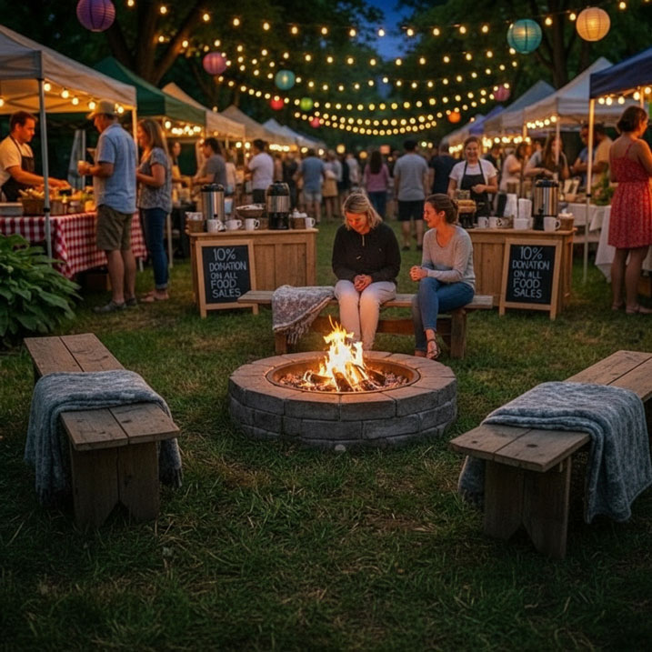 Heated rest zones, hot cocoa stations, and 10% donation on all food sales